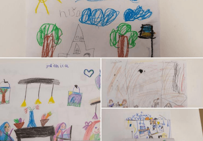 Year 1 and 2 students at Slovene Foundation have been learning about rooms in the house or apartment. They played memory game and tried to find pairs of "kuhinja, jedilnica, dnevna soba, spalnica, otroška soba in kopalnica". They were also very creative with drawing the houses and rooms.