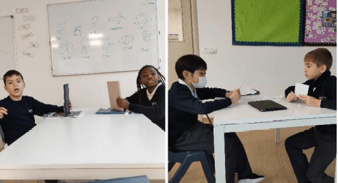 Years 3 and 4 did a barrier game activity during the week. Barrier games are a great way to encourage speaking between the students. One student has one piece of information and their partner the other one. The key is, to talk to each other, to find the pieces of information you're looking for.