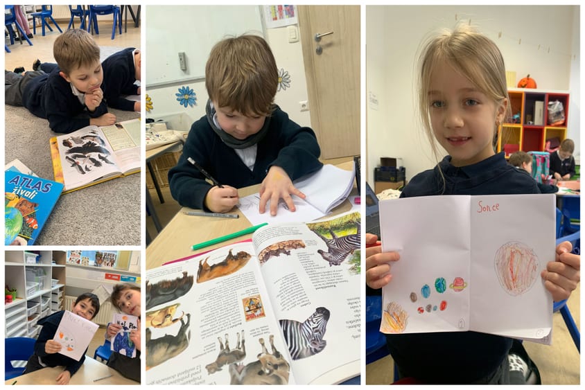They looked at the photos of different animals and natural sights and started making booklets about them.